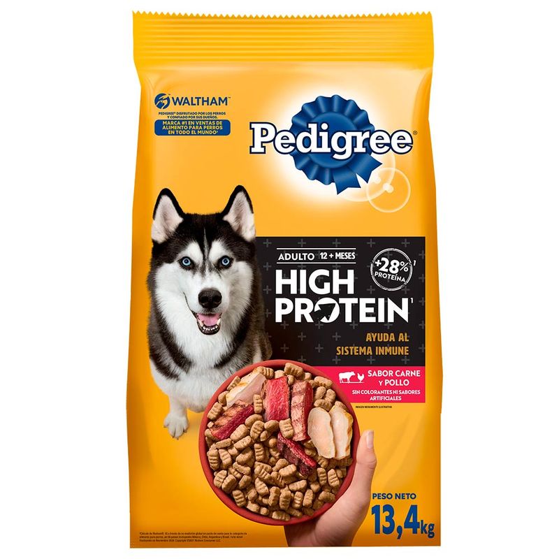 Dale a tu mascota lo mejor: Omega 6 que ayuda a que tenga una piel y un pelo saludable; Proteína de alta calidad; Músculos y huesos fuertes; Antioxidantes, vitamina E y selenio. Alimento seco elaborado bajo estrictos estándares de calidad y basado en el conocimiento científico de WALTHAM®, una autoridad líder en nutrición animal. PEDIGREE® HIGH PROTEIN ™ contiene 28% más de proteína que ayuda al desarrollo muscular, manteniendo su sistema inmune gracias a la vitamina E y minerales. Hecho con Omega 6 para una piel y pelo saludables, así como fibras y proteínas de alta calidad para una óptima digestión y heces firmes fáciles de recoger.?