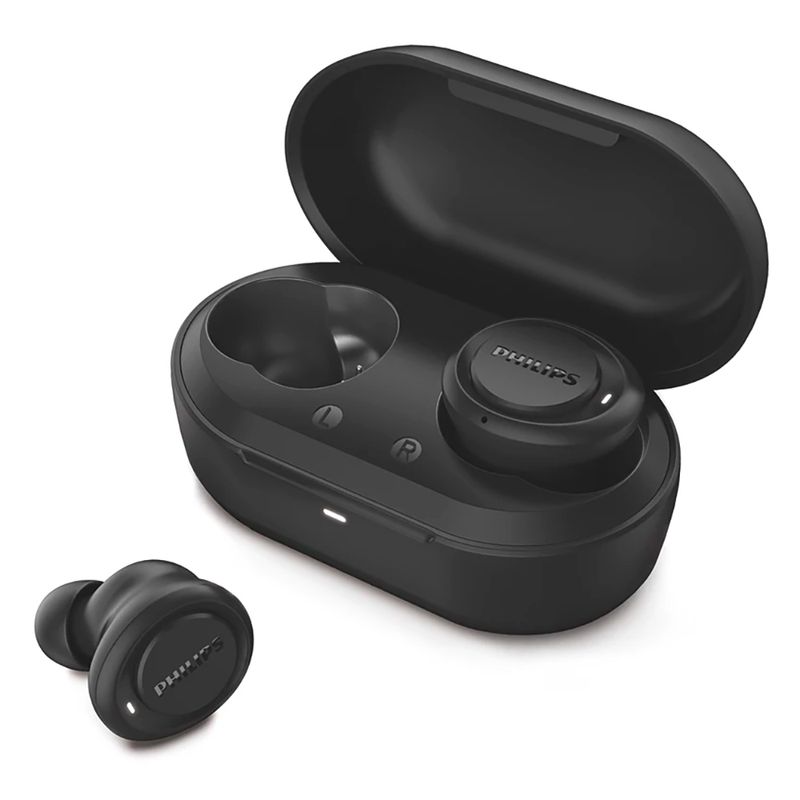 Auricular Bluetooth PHILIPS Mod. TAT1215BK00 Negro ¿Existe algo más práctico que los auriculares realmente inalámbricos con un estuche de carga que se adapta al bolsillo de tus jeans? Estos auriculares intrauditivos resistentes a las salpicaduras y la transpiración te brindan un excelente sonido, y hasta 18 horas de tiempo de reproducción. Micrófono integrado con cancelación de eco para un sonido nítido: No experimentarás más ese eco molesto mientras hablas por teléfono. Gracias a nuestra cancelación del eco acústico, siempre tendrás una conexión clara y sin problemas. Protección IPX4 resistente a salpicaduras y transpiración: El estuche de carga pequeño es sumamente cómodo. Estos auriculares realmente inalámbricos también son resistentes a las salpicaduras desde cualquier dirección. Además resisten la transpiración y no tenés de qué preocuparte si te quedás atrapado bajo la lluvia. Ajuste seguro y cómodo: Obtenés un excelente sonido de los controladores de neodimio de 6 mm y podés bailar tus canciones gracias al diseño cómodo y ligero. Las cubiertas de las almohadillas suaves e intercambiables te ayudan a encontrar un cómodo ajuste intrauditivo.