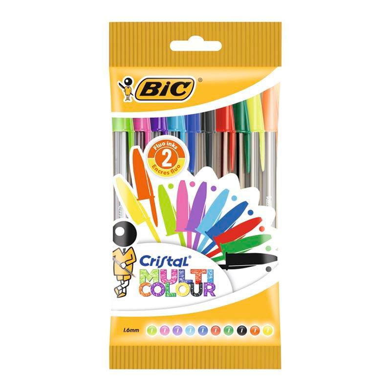 El bolígrafo Bic Cristal multicolor viene en un paquete de 10 unidades. Con su tinta de gran calidad y colores vibrantes, es ideal para resaltar tus notas y dibujos. Su diseño clásico y su punta fina lo hacen perfecto para escribir con comodidad y precisión.