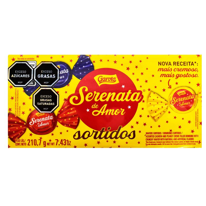 La Bombonera GAROTO Serenata de Amor Mix de 211 g es un surtido de deliciosos bombones brasileros. Contiene variedades de exquisitos rellenos como nueces, crema de chocolate y fresa, todos cubiertos con una capa de chocolate de alta calidad. Ideal para regalar o disfrutar en cualquier ocasión.