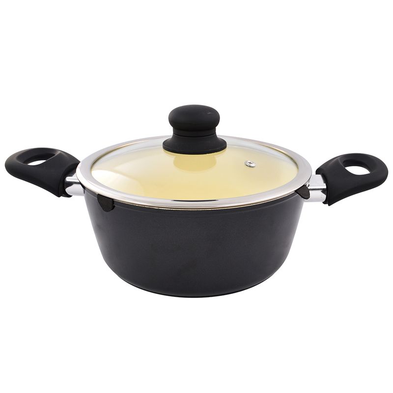 Cacerola negra 20cm aluminio c/revestimiento en cerámica c/tapa vidrio, producto de excelente calidad.