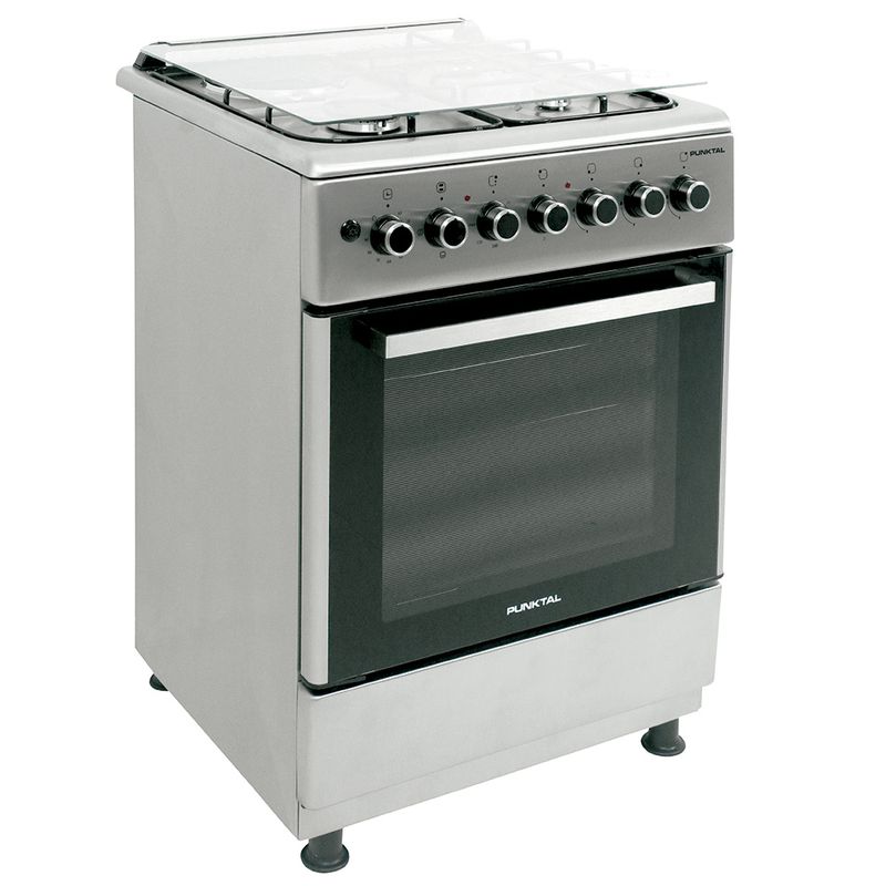 Cocina Punktal Mod. PK-1050TK cuenta con 3 hornallas a gas, 1 disco eléctrico, grill y horno eléctrico de 70 L .Doble vidrio en puerta. Encendido eléctrico. Quemadores esmaltados .Mesada de acero inoxidable. Ideal para que tus recetas sean las mas deliciosas.