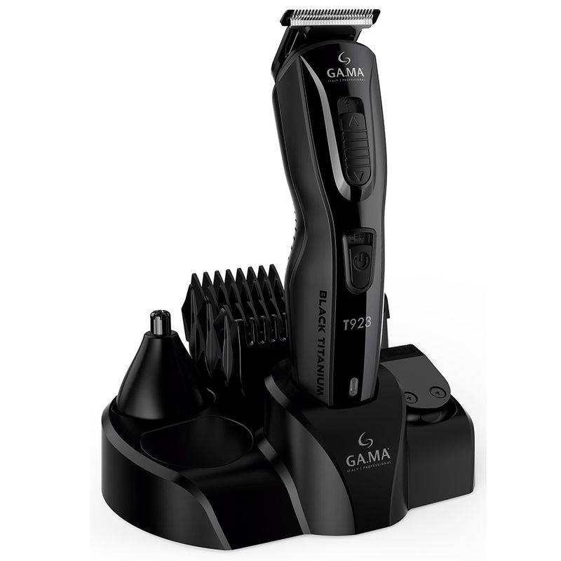 Cortapelo GA.MA Multifunción Mod. T923BAT de color negro titaniun para que puedas cortarte el pelo desde la comodidad de tu hogar, viene con una batería recargable y accesorios para la nariz y oído. Tiene una garantía de 2 años.