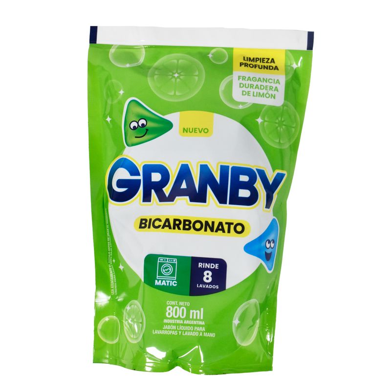 Deter líquido GRANBY bebé 800 cc es un limpiador delicado y efectivo, pensado para ropa de bebé. Deja las prendas limpias, con un suave aroma y sin residuos. Hipoalergénico, dermatológicamente testeado y libre de colorantes y fosfatos, garantiza seguridad y cuidado para la piel sensible de tu bebé.