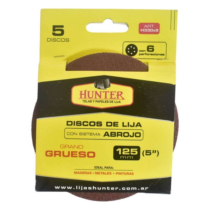 Disco perforado HUNTER con velcro grano grueso 125 mm 5 un.