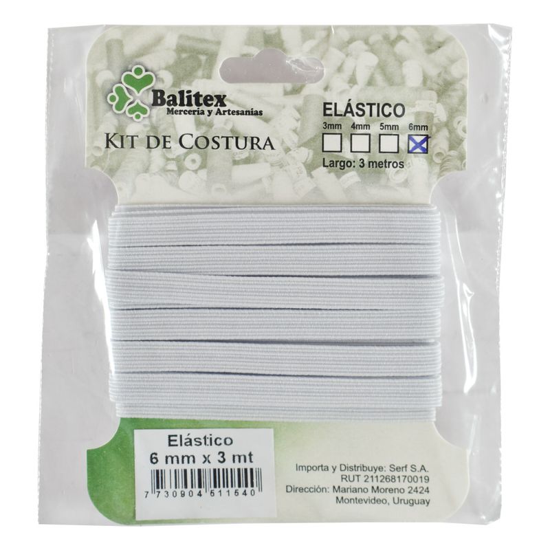 Elástico de 6 mm x 3 metros, opción versátil para proyectos de costura. Proporciona resistencia y flexibilidad para prendas cómodas y ajustadas.