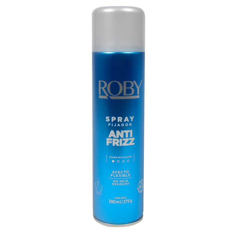 El Fijador ROBY antifrizz new spray de 390 ml es un producto de alta calidad para el cabello. Ofrece un control firme del frizz, proporciona brillo y mantiene tu peinado en su lugar todo el día. Su fórmula ligera y no pegajosa se dispersa fácilmente para un acabado natural.