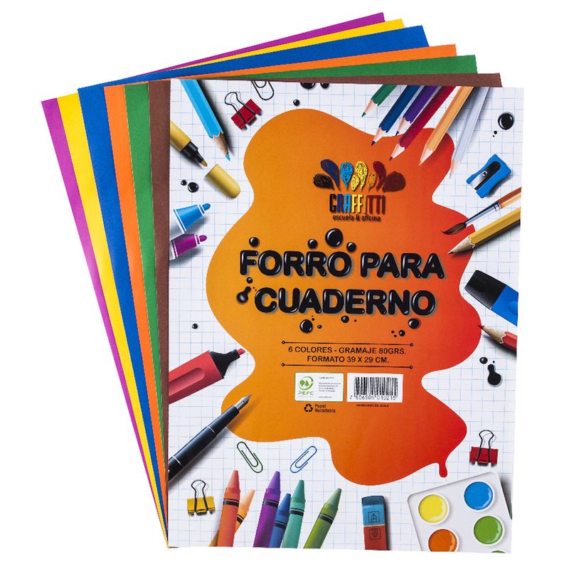 Forro de papel para cuaderno GRAFFITTI 6un 80g 39x29cm, los mejores útiles para las clases.
