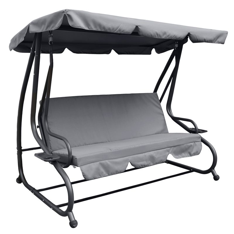 La hamaca cama para 3 personas es de color gris oscuro, con dimensiones de 200 x 164 x 120 cm. Proporciona un espacio amplio y cómodo para relajarse, perfecto para compartir en familia o con amigos. Hecha de materiales duraderos para resistir las condiciones al aire libre.