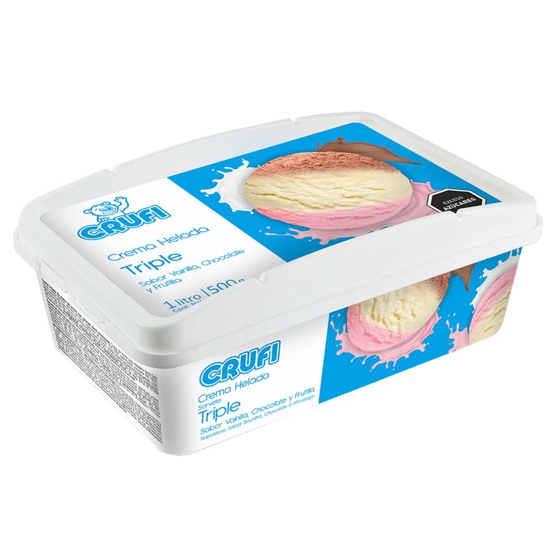 Helado CRUFI triple crema, frutilla y chocolate 1 L