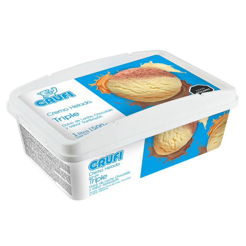 Helado CRUFI triple Dulce de leche, Chocolate y Sambayón 1 L