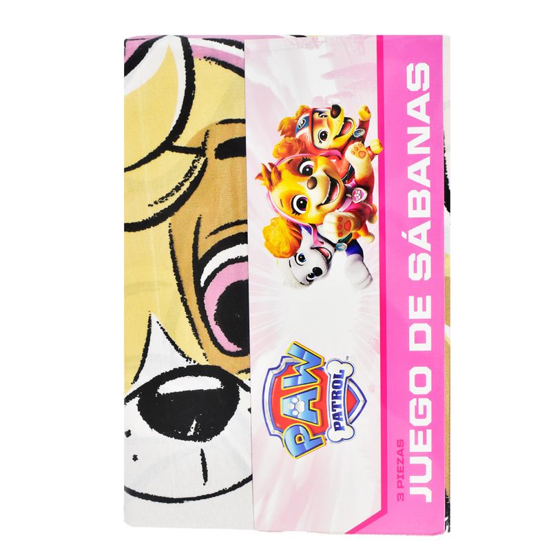 Está fabricado en suave microfibra, proporcionando comodidad y durabilidad. Incluye sábana encimera, bajera y funda de almohada con un diseño femenino inspirado en la serie 'Patrol'.