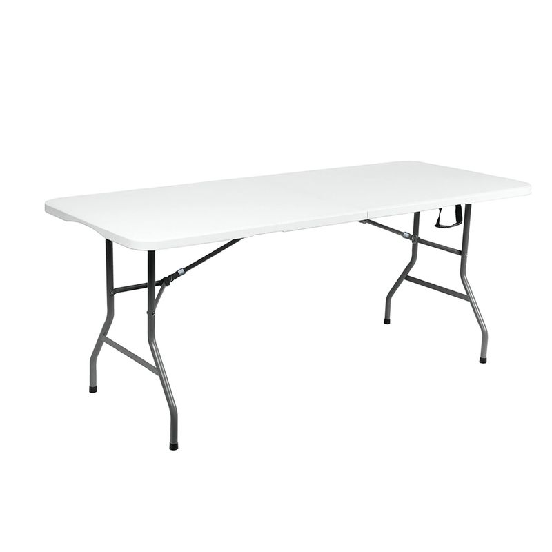 Esta es una mesa plegable rectangular estilo valija, con dimensiones de 180x70x74 cm. Es práctica, versátil y de fácil transporte. Ideal para eventos y espacios exteriores. Al ser plegable, permite un almacenamiento cómodo. El diseño robusto garantiza durabilidad y resistencia.