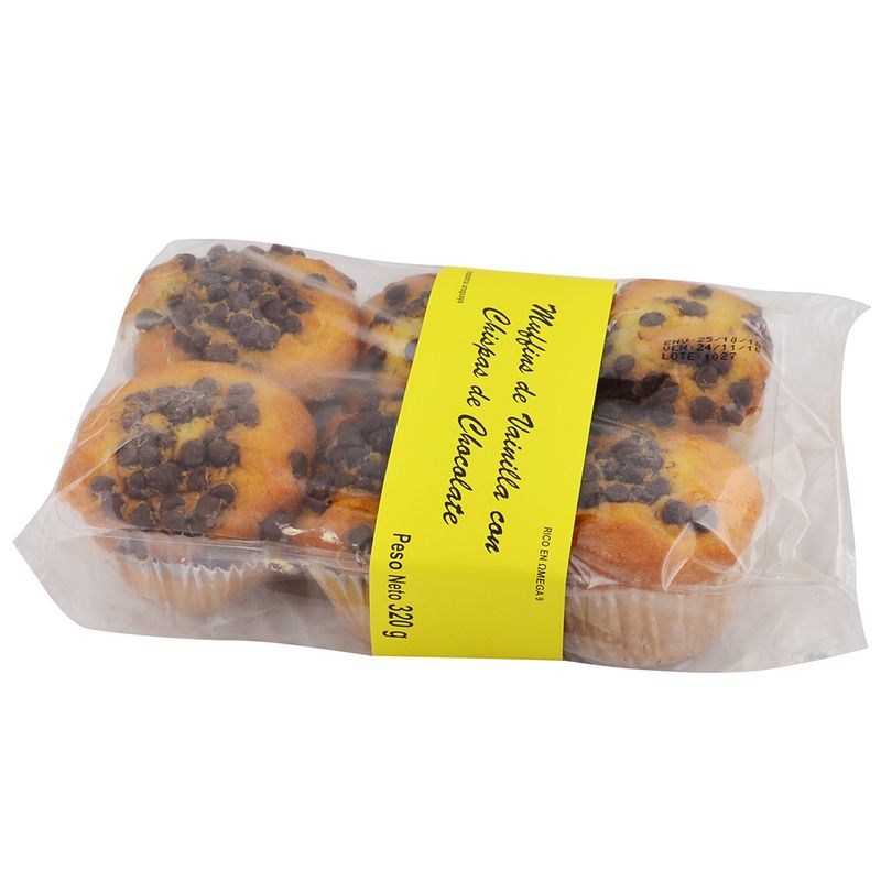 Muffins de vainilla con chispas 6 un.