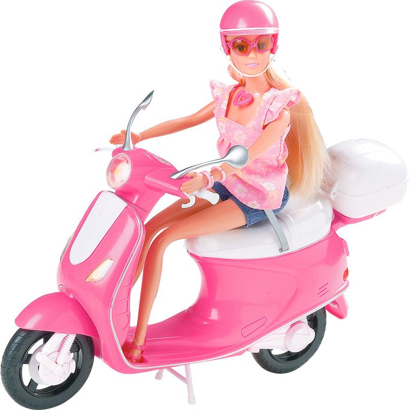 ¡Diviértete con la muñeca SteffI! La muñeca Steffi incluye una moto rosada y blanca, que te darán ganas de jugar sin parar. Podras desplazarla en su moto sobre todo tipo de terrenos. ¡El regalo ideal para todas las niñas!