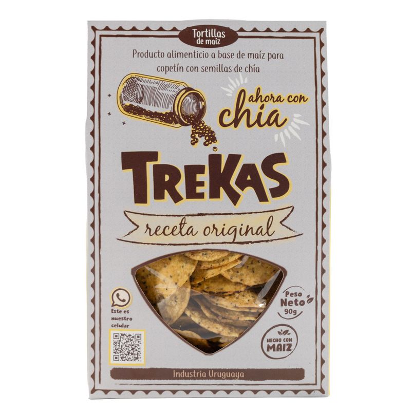 Deliciosos nachos con chia TREKAS de 90 g: la combinación perfecta de sabor y salud. Crujientes, llenos de fibra y nutrientes esenciales.