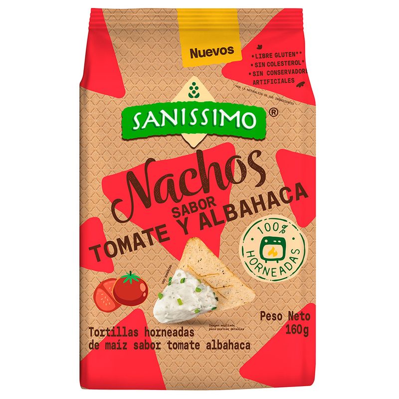 Nachos SANISSIMOS Tomate y Albahaca 160 g