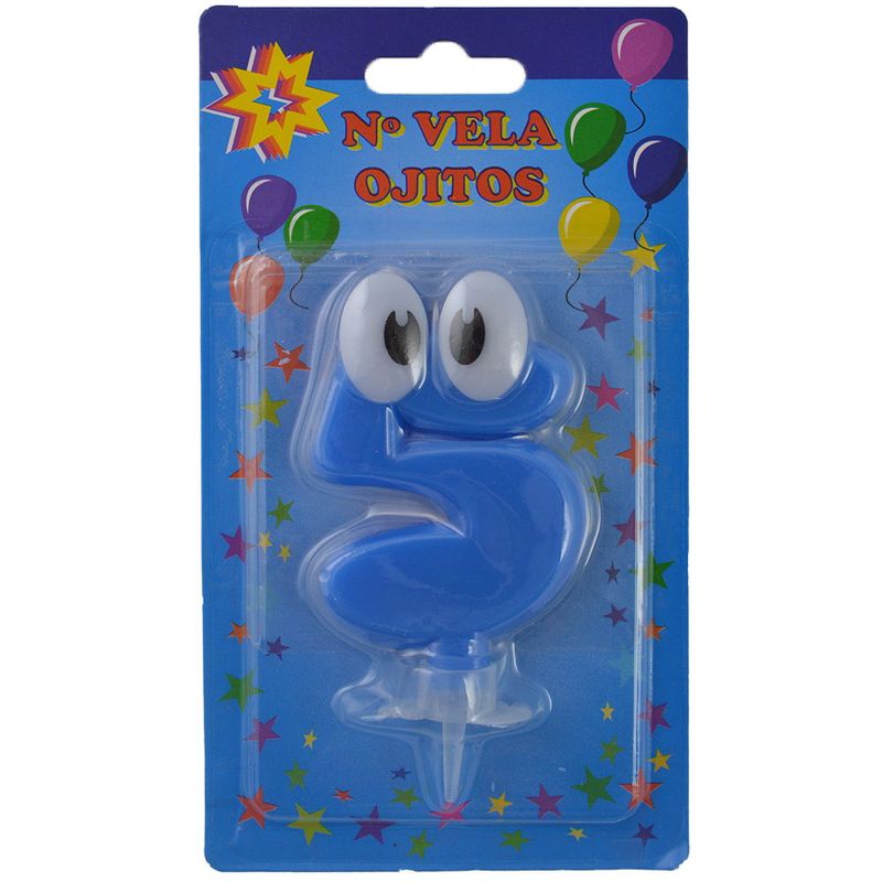Número 5 con ojos celestes + portavela de plástico. ¡Producto de excelente calidad!