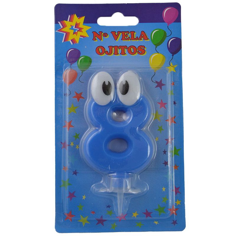 Número 8 con ojos celestes + portavela de plástico. ¡Producto de excelente calidad!