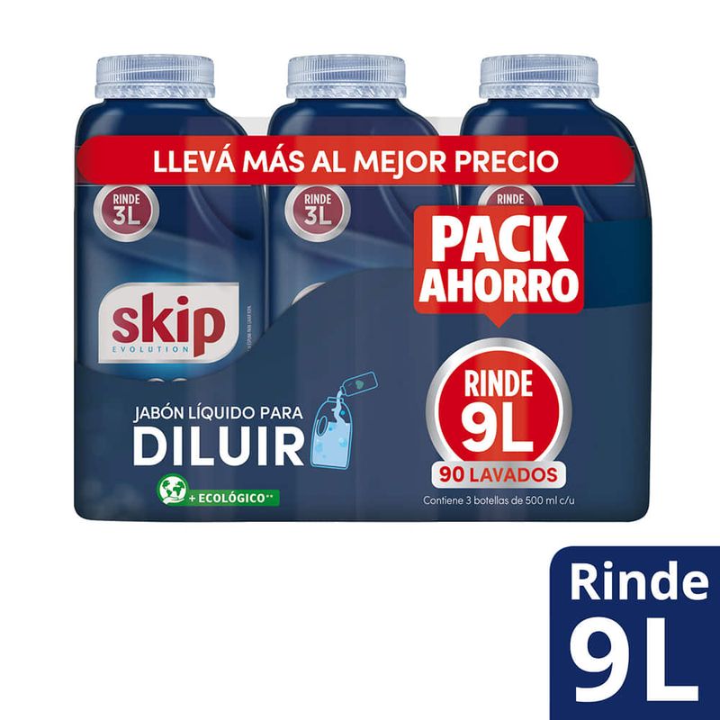 Pack x 3 detergente líquido SKIP para diluir 500 cc