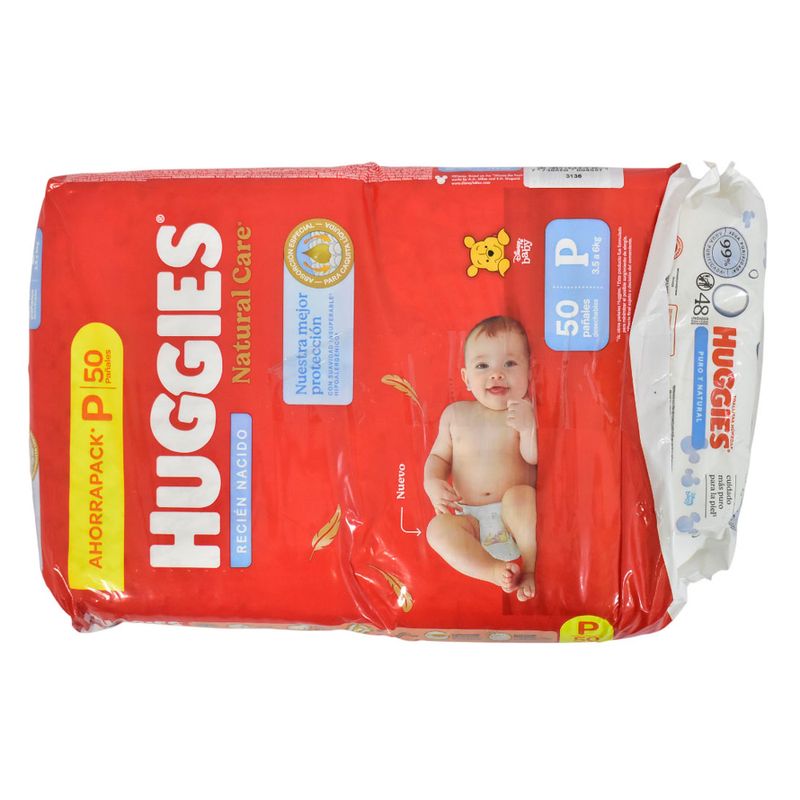 Pañal HUGGIES Natural Care P 50 un. + Toallas Húmedas
