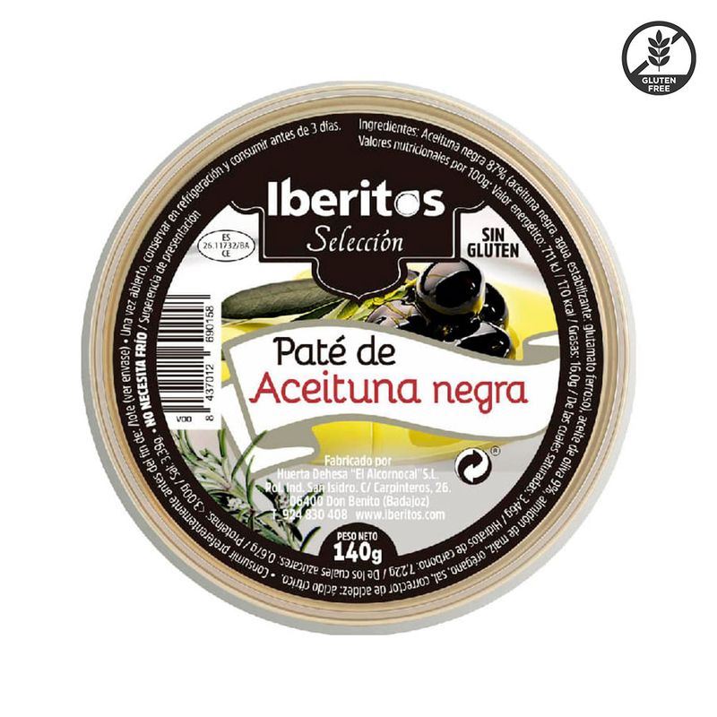 AlmacénCanasta familiarSalsas y aderezosPaté de aceituna negra IBERITOS sin gluten 140 g