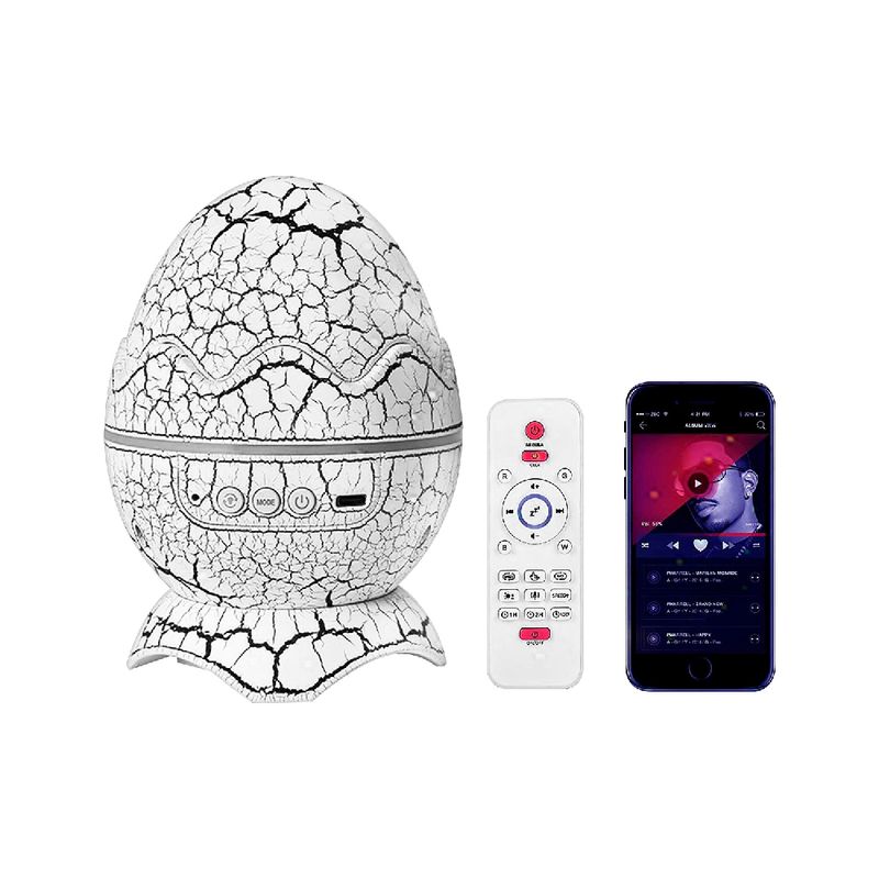 Lámpara proyector huevo de dinosaurio. Medidas: 15 x 10 cm; Incluye control remoto; Material: ABS; Wifi y Bluetooth; Funcionamiento: USB 5V; Función: ruido blanco; Temporizador
