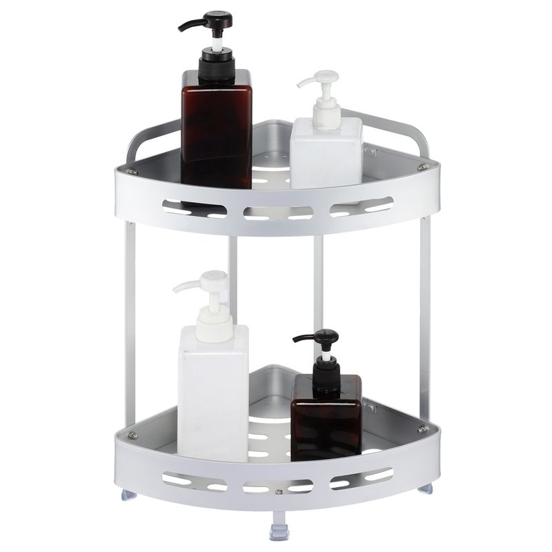 Rack esquinero para baño de 2 pisos en aluminio negro, ideal para maximizar el espacio y organizar productos de higiene. Su diseño elegante y moderno complementa cualquier decoración, proporcionando funcionalidad y estilo.
