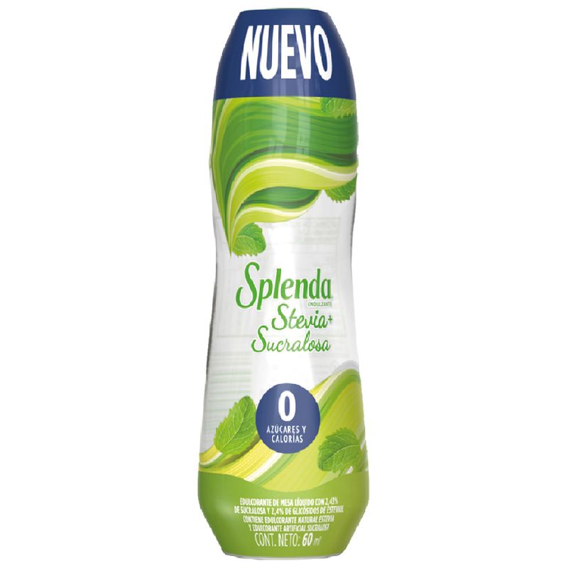 Splenda líquido stevia 60 ml: Disfruta de una dulzura natural y saludable con este edulcorante líquido. El Splenda líquido stevia combina la pureza de la stevia con la versatilidad del formato líquido, brindándote una opción sin calorías para endulzar tus bebidas y alimentos. Con solo unas gotas, puedes agregar un toque dulce y delicioso a tu café, té, batidos y postres. El envase de 60 ml es práctico y fácil de llevar contigo. Descubre una alternativa natural y sin calorías para disfrutar de tus momentos dulces con Splenda líquido stevia.