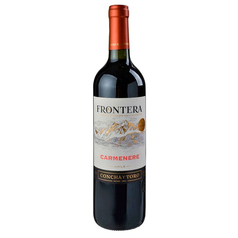 Frontera Carmenere es un vino elaborado con uvas 85% Carmenère y 15% Cabernet Sauvignon. Su color es rojo rubí brillante, con tonos violetas. Muy aromático, con notas de ciruelas combinadas con especias. Suave, redondo y con buena permanencia.