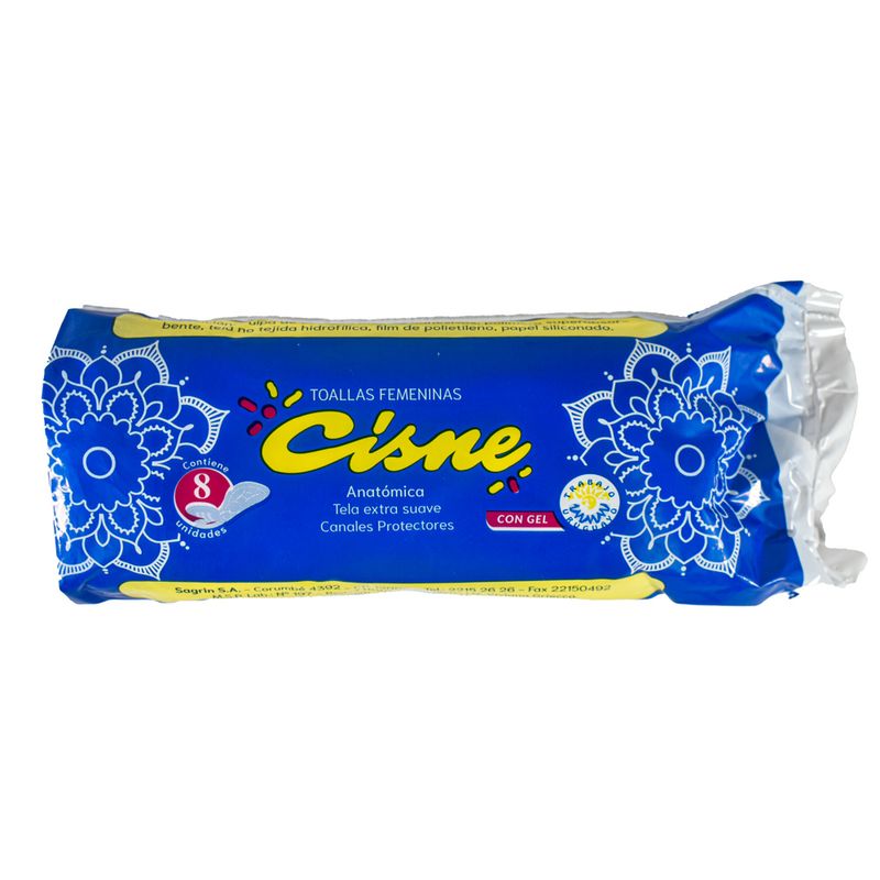 Toalla femenina CISNE anatómica, paquete de 8 unidades. Diseño anatómico para mayor comodidad y protección durante el periodo menstrual.