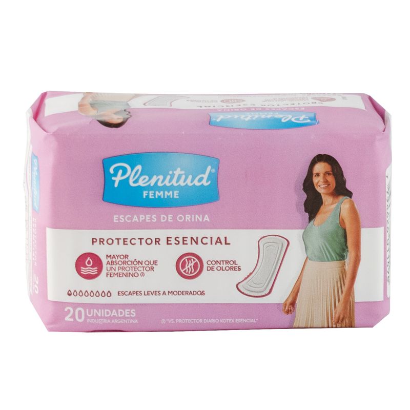 Toalla Plenitud femme protector ultra leve: Discreta y segura, ofrece máxima protección sin sacrificar comodidad. Absorbe rápidamente y neutraliza olores. Ideal para mujeres activas. Paquete de 20 unidades para una cobertura completa.