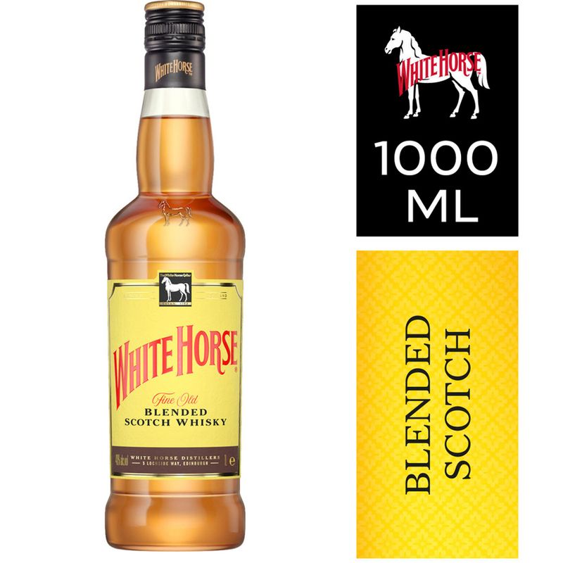 Whisky Escocés WHITE HORSE 1 L es una mezcla suave y equilibrada, famosa por su distintivo carácter ahumado y notas de vainilla y miel. Con una tradición que data de 1861, ofrece una experiencia de sabor rica y compleja, ideal para disfrutar solo o en cócteles.